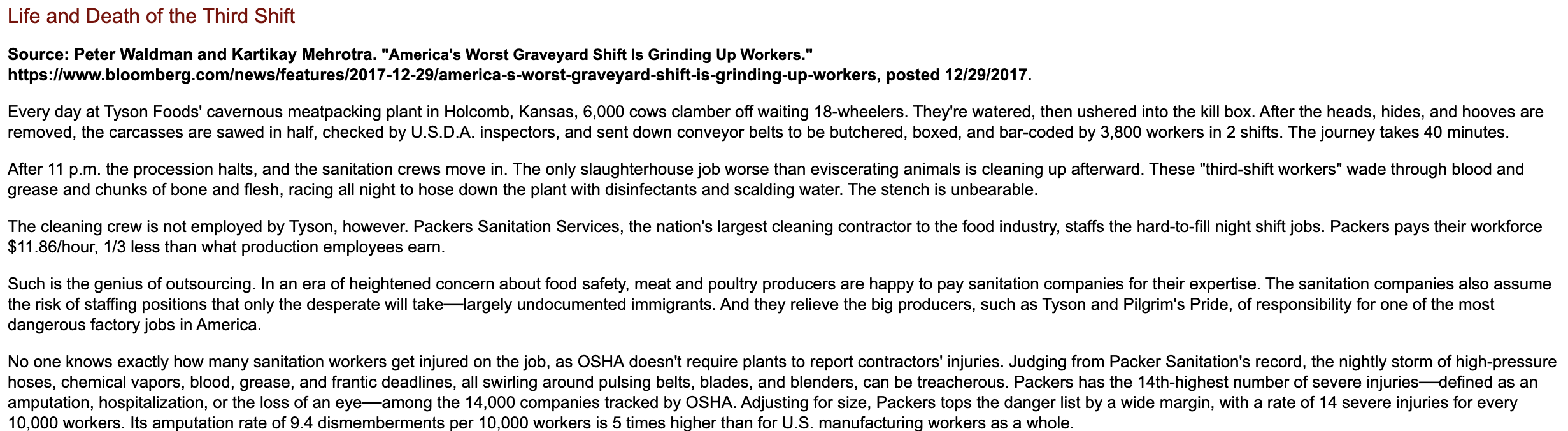 Solved Life And Death Of The Third Shift Source Peter Chegg Com